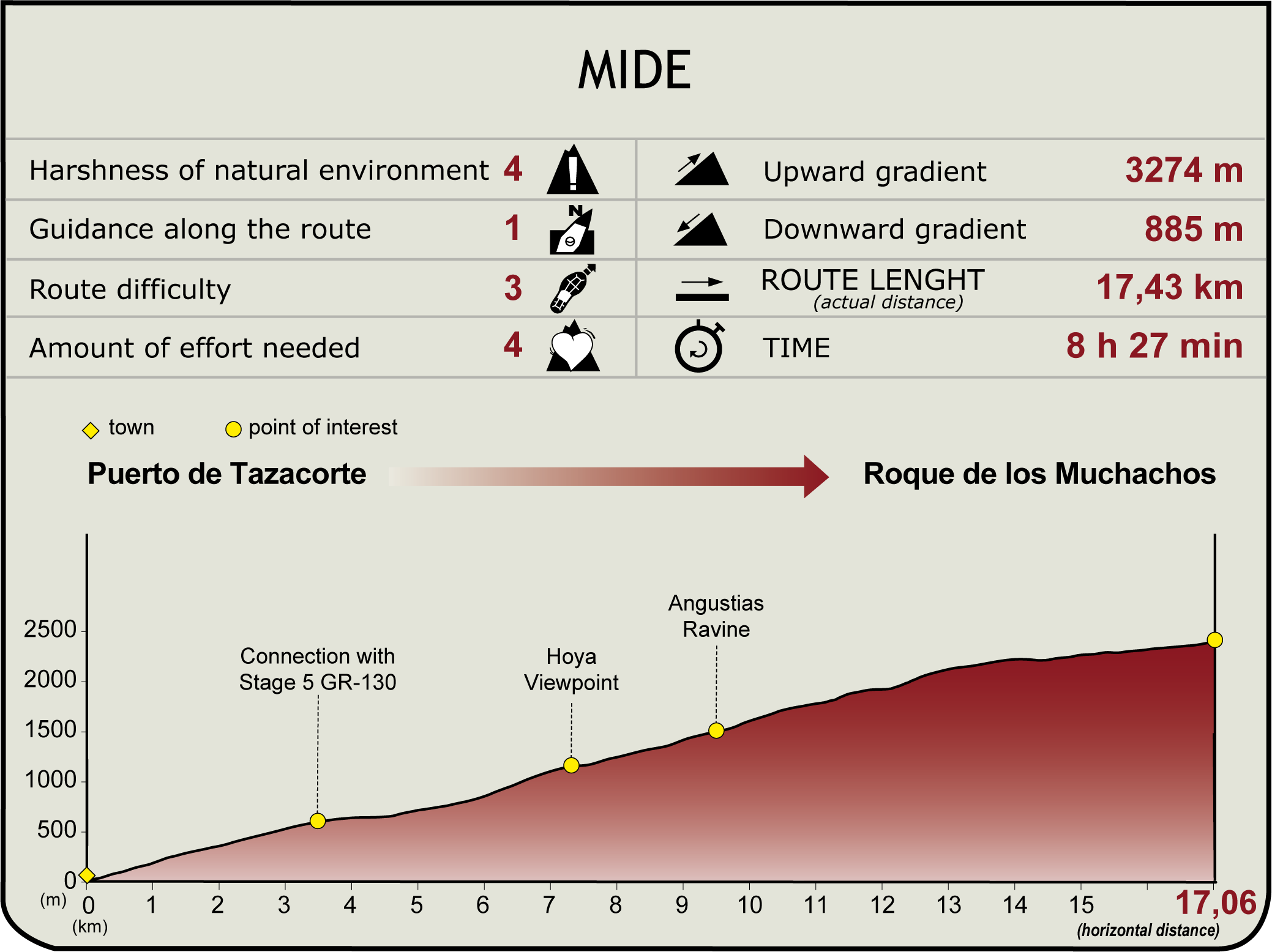 (Calculated according to the MIDE criteria for an average excursionist with a light load)