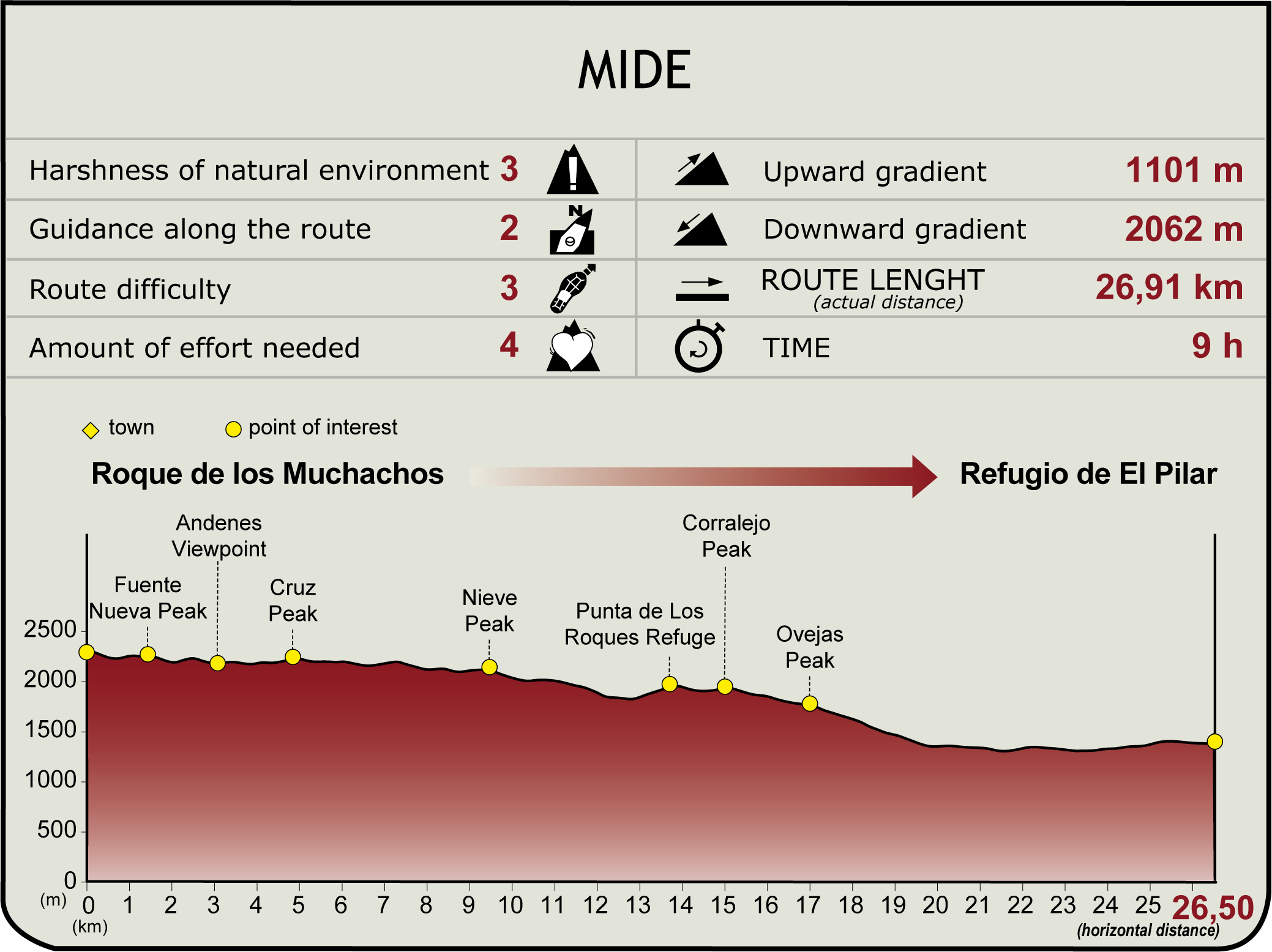 (Calculated according to the MIDE criteria for an average excursionist with a light load)