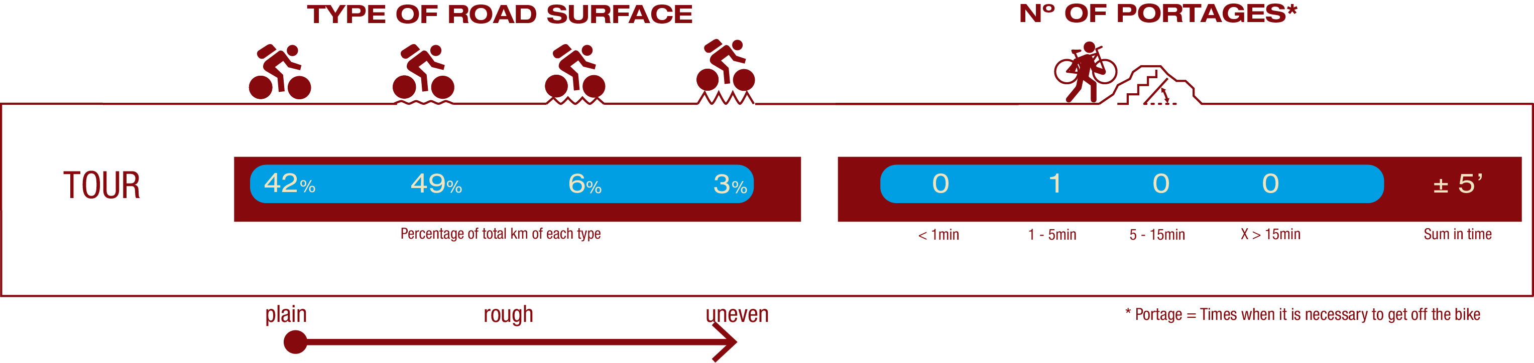 - pecial attention should also be paid to certain sections with very steep inclines, which may pose a risk, as well as to the condition of the road surface, which in some places is very stony or has areas of sand and gravel.