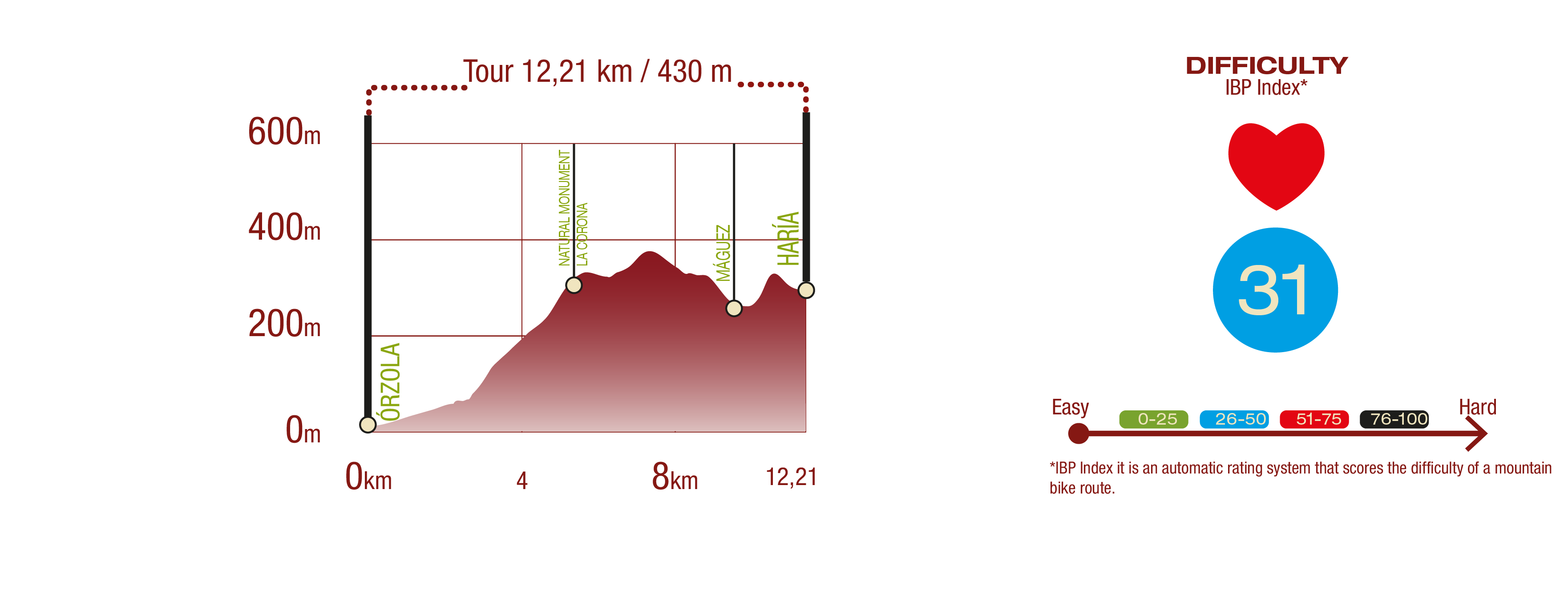 (Calculated according to the MIDE criteria for an average excursionist with a light load)