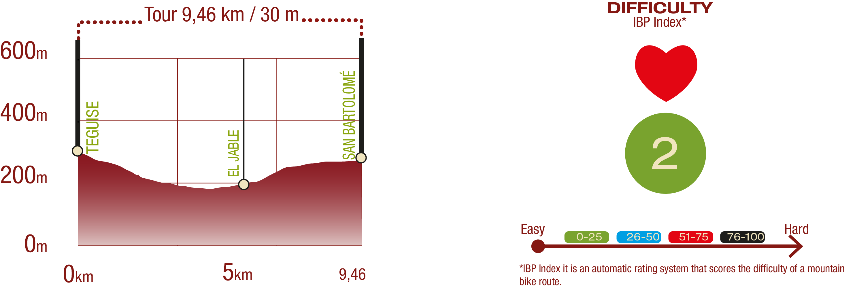 - Risk of being hit by a vehicle at road crossings and in urban areas shared with vehicular traffic in the towns of Haría and San Bartolomé.