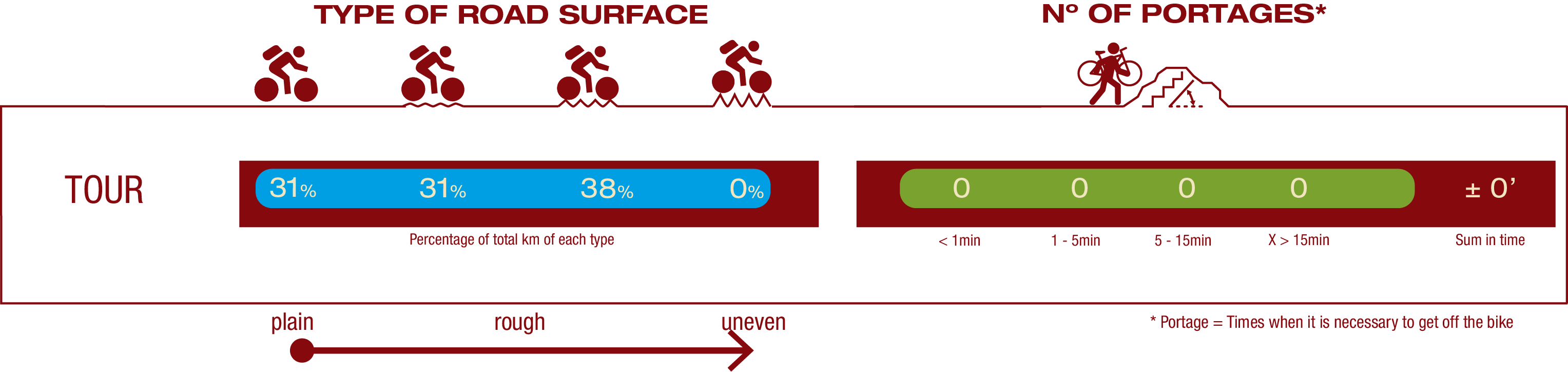 - It is recommended to exercise extreme caution on sections where the surface is composed of sandy or loose rocks, as these elements can obstruct bicycle wheels, cause them to become stuck, and increase the risk of falling.