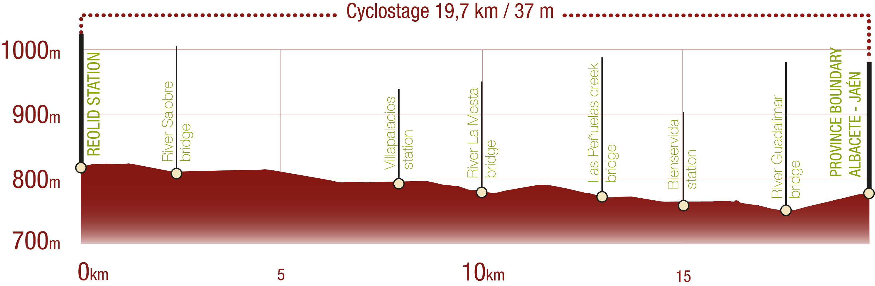 Last stretch of the La Sierra de Alcaraz Greenway Nature Trail, which begins at the old station of Reolid and merges into the Segura Nature Trail, with both of them following the old Baeza-Utiel railway route. During the trip, the traveller will visit the old stations of Reolid, Villapalacios and Bienservida; the first two having tunnels in their passages through each municipality.