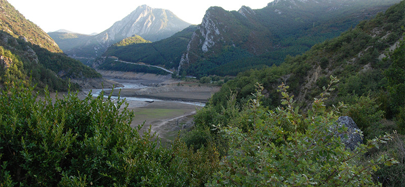 The route descends once again, crossing a forest next to a wooden fence towards a meander formed by the river and, after crossing two hills, it heads towards Llesp reservoir among hazel-nut trees (Corylus avellana).