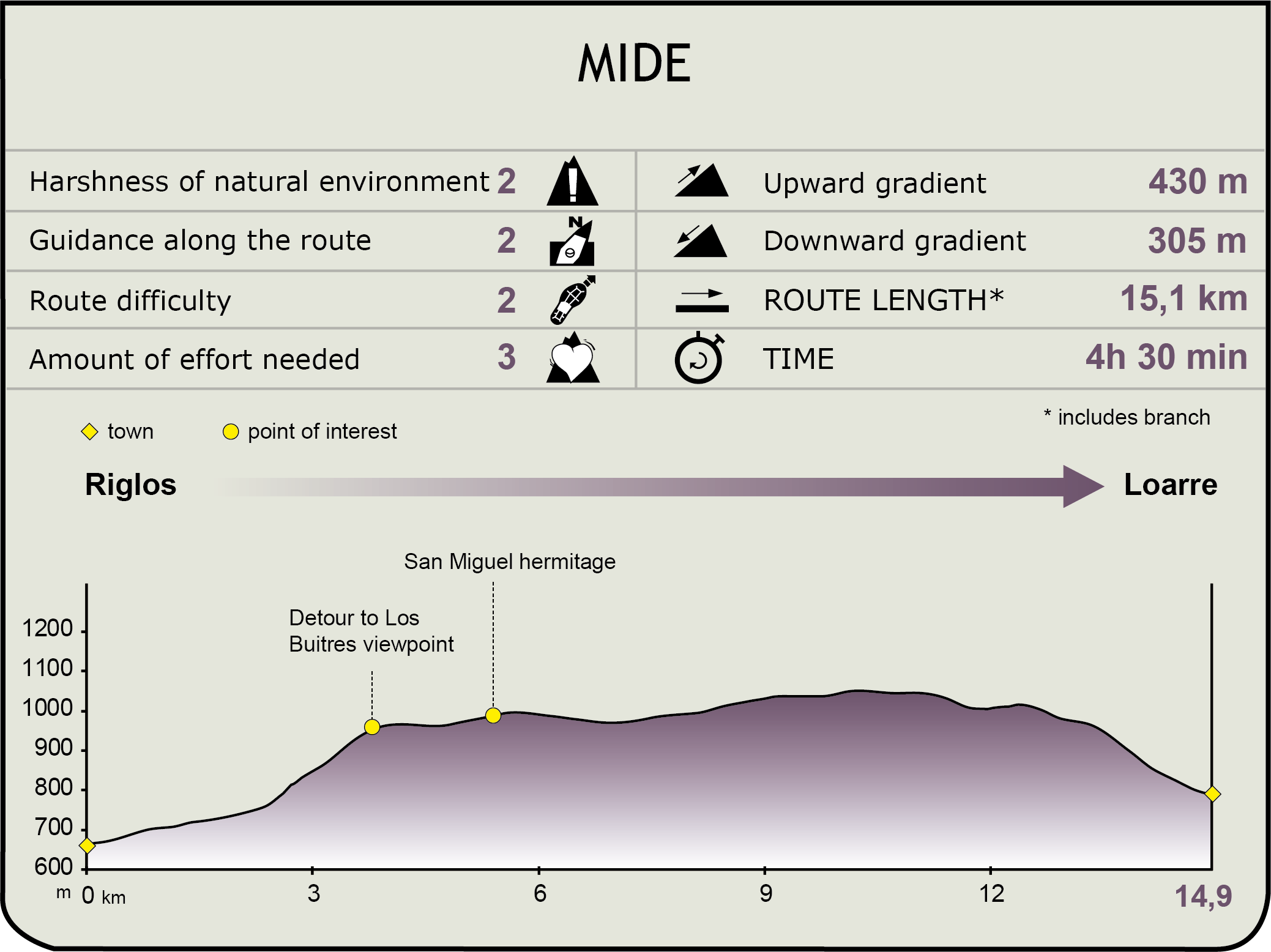 This Stage of the Nature Trail leaves from the town of Riglos, taking a steep street next to the old, now renovated public washhouse, which leads as far as the square and the top part of the village. Here, the trail turns to the right and carries on along a narrow street until it comes to an informative panel on mallos, at the village’s exit. From here, the verticality of these reddish conglomerate walls, with a height of over 300 m, which rise above the small village built on the hillside, is breathtaking. Worthy of note is the outline of the chapel of Nuestra Señora del Mallo, at the foot of these formations that are so characteristic of La Hoya de Huesca, whose reddish tones due to ferruginous materials are enhanced even more at dawn.