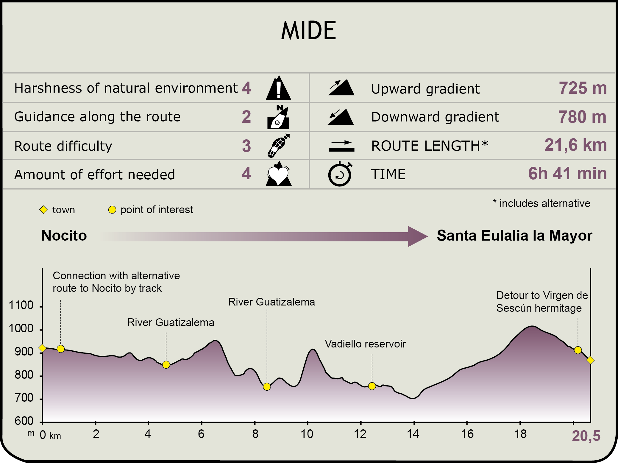 (Calculated according to the MIDE criteria for an average excursionist with a light load)