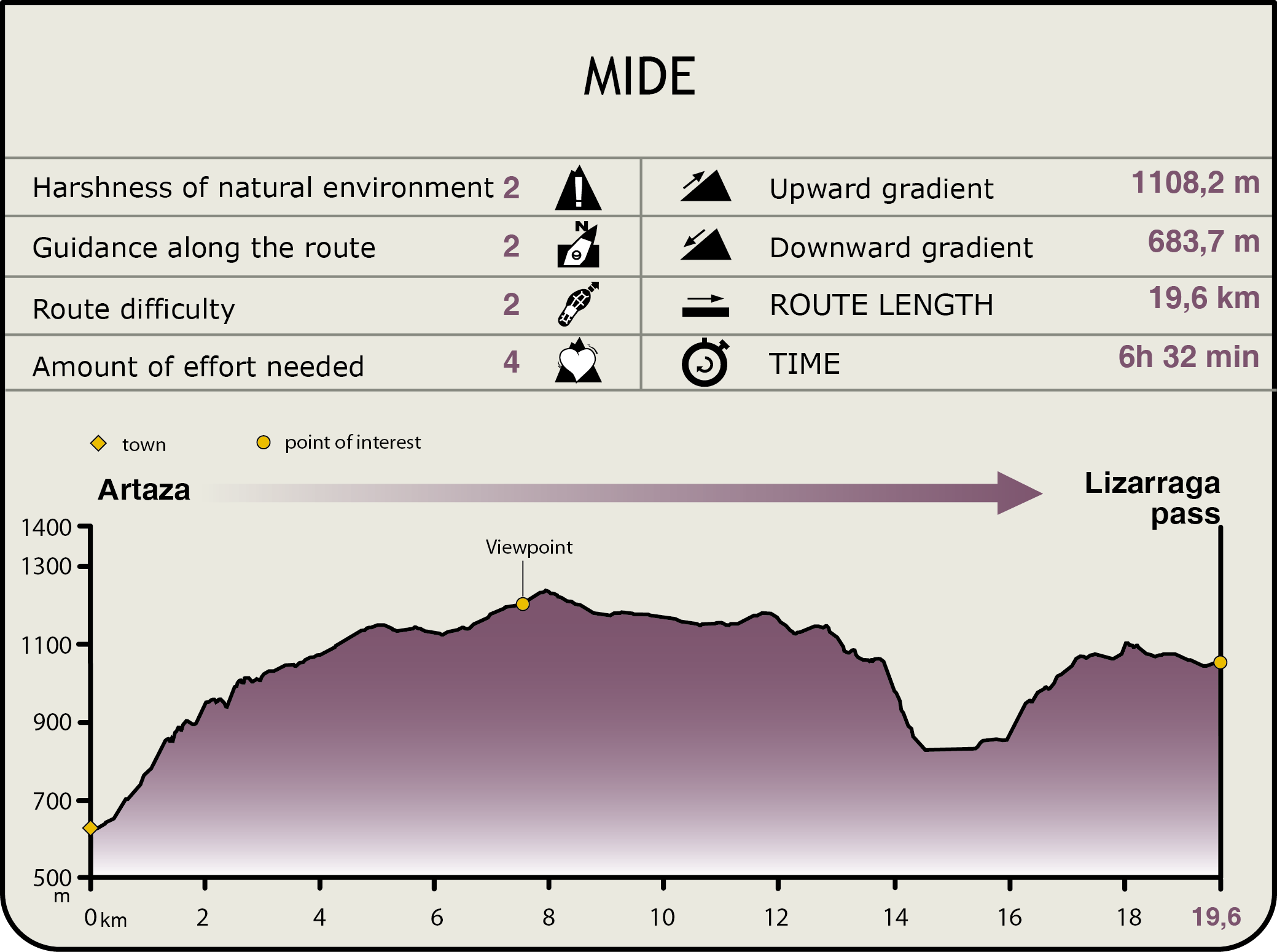 The areas with steep slopes, especially the climb from the beginning of the stage as far as the pass of Urra, and the descent from the majada of Arroniz towards Zabilde, as well as its subsequent climb, once again, up to the high plateau and the dirt or rocky surface in some parts of the path make this stage very tough if you want to cycle.