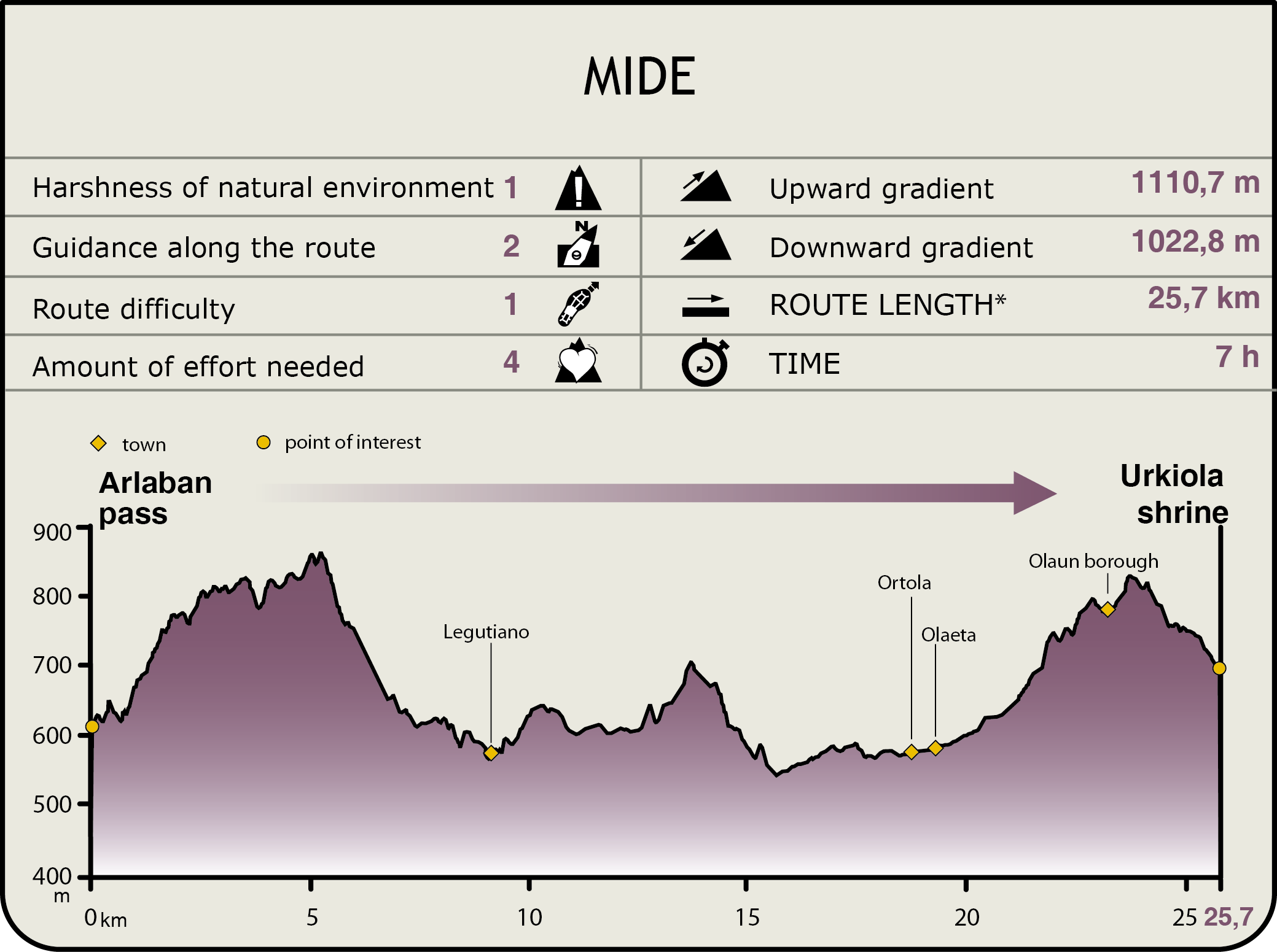 On following the road, you come to the town of Urkiola, located at the foot of the road to the Urkiola pass, which links Vitoria–Gasteiz to Bizkaia, through Durango. The second stage ends at this point.