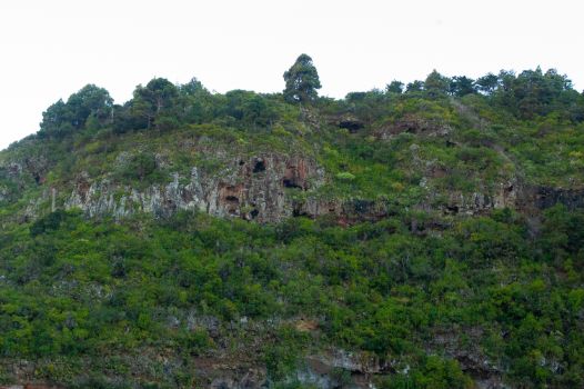 Por otro lado, en el sector medio-alto, aún resisten a las presiones agrícolas y ambientales zonas de bosque termófilo, famoso por las palmeras de alta montaña (Phoenix canariensis). Zonas en las que es fácil distinguir especies características de matorral como jaras (Cistus monspeliensis), granadillos (Hypericum canariense), verodes (Kleinia neriifolia) o sabinas (Juniperus canariensis).