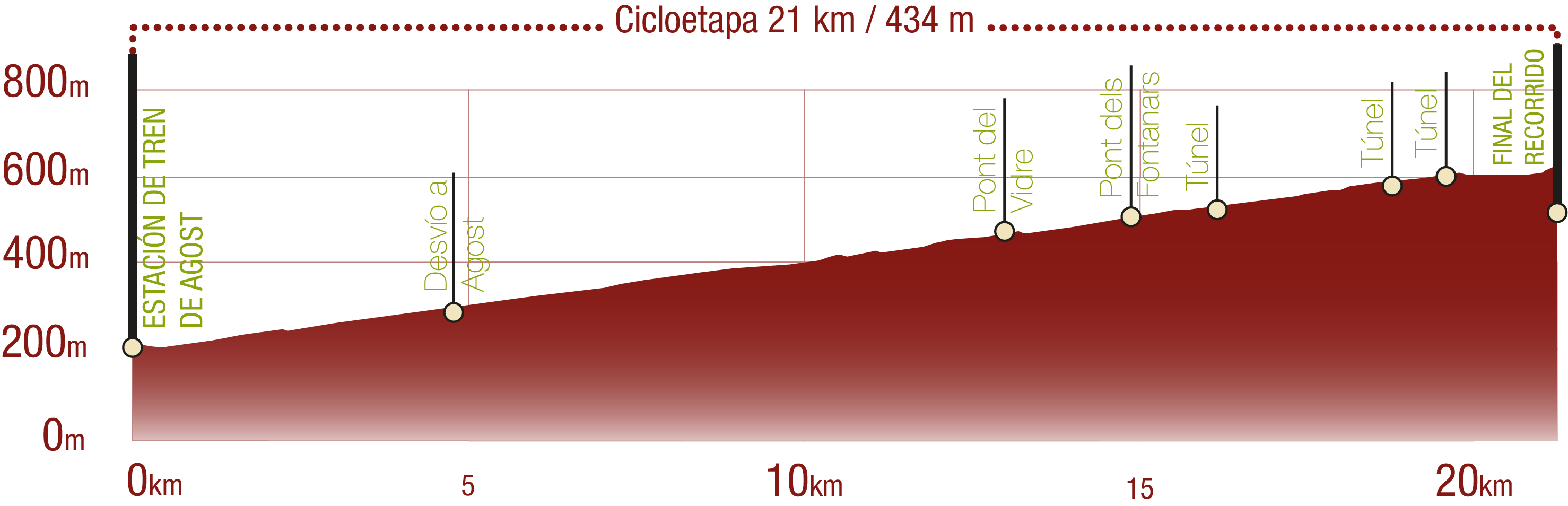 Esta parte del recorrido se encuentra presidida por la majestuosa Sierra del Cid, mientras que el entorno más cercano a la ruta lo ocupa alguna fábrica de ladrillos y el pueblo de Agost.