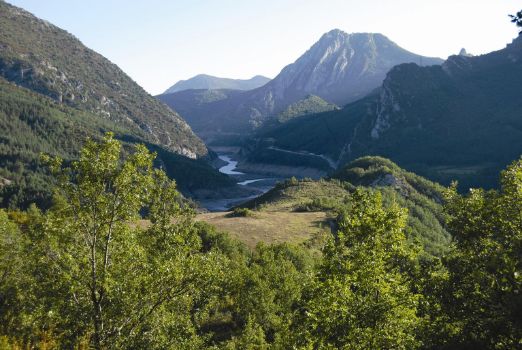 La ruta desciende nuevamente atravesando el bosque junto a un vallado de madera, hacia un meandro formado por el río y, tras superar dos collados, se dirige entre avellanos (Corylus avellana) hacia el embalse de Llesp. Construido en 1951 para abastecer de agua a la central hidroeléctrica de Pont de Suert, este embalse es actualmente un humedal de gran valor ecológico por la gran biodiversidad que acoge, parte de la cual puede descubrirse cómodamente gracias a los observatorios de aves ubicados en sus orillas.